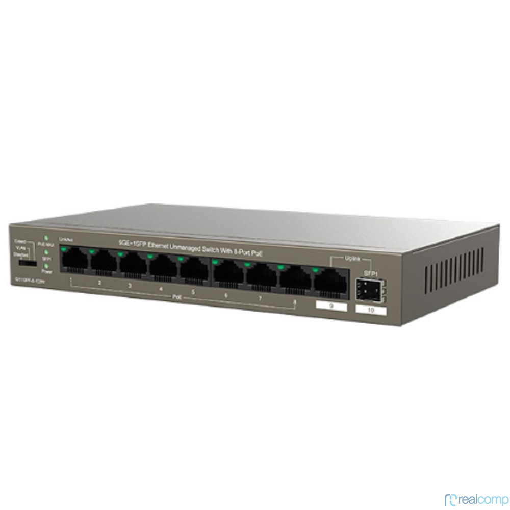 IP-COM G1110PF-8-102W Коммутатор PoE неуправляемый 9-Ports 10/100/1000 Base-T + 1-Port 1000 Base-X SFP / 8-Ports PoE (PoE бюджет 92W)