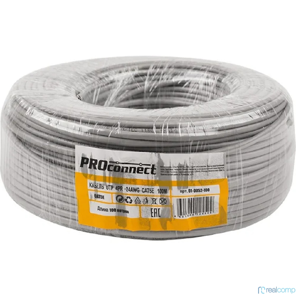 PROconnect (01-0052-100) Кабель витая пара U/UTP, CAT 5e, PVC, 4PR, 24AWG, INDOOR, SOLID, серый, 100м