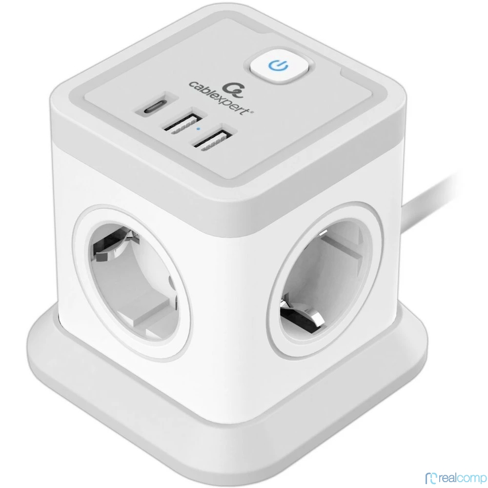 Cablexpert Сетевой фильтр Tower TWR-4-CU2-W-2 (4р, 10А, 1xType-C PD, 20Вт, 2 х USB, 2м, ур.защиты 2+) белый, коробка {22557}