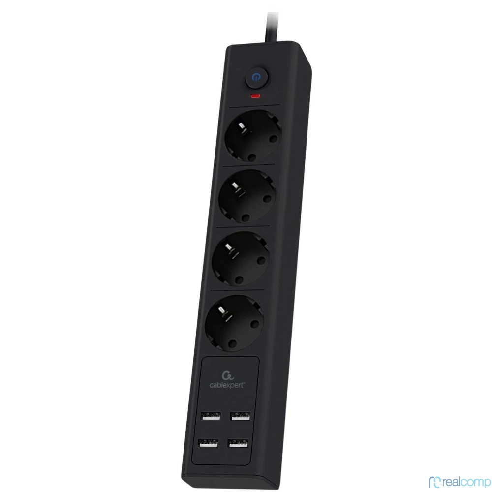 Cablexpert Сетевой фильтр Exnovo EXN-4-U4-B-2 (4р, 16А, 4 х USB, 3.4A, 2м, ур.защиты 4+) черный, коробка {22560}