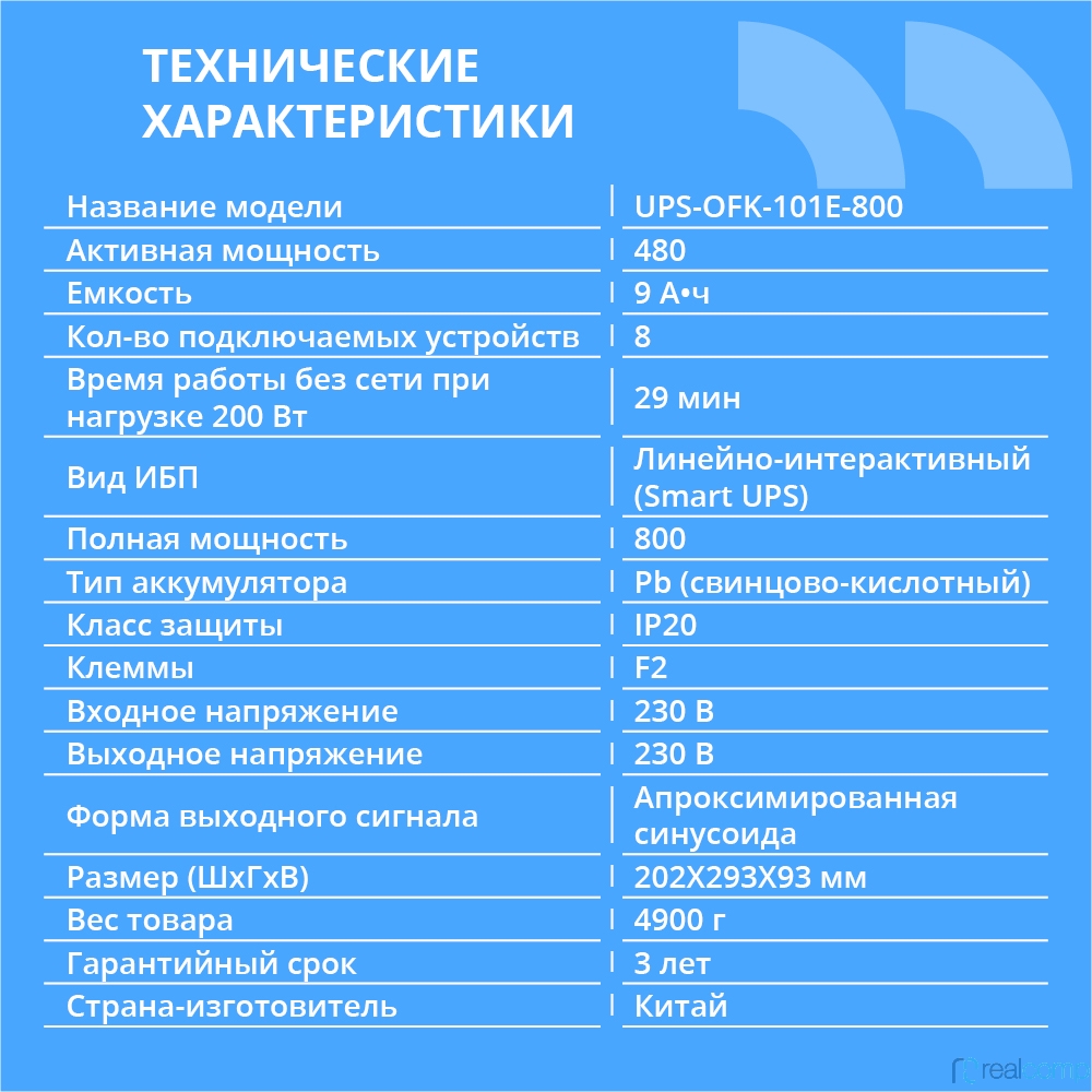 ИБП CBR [UPS-OFK-101E-800] 800VA/480W, Schuko CEE 7 Outlets: (x4 Battery & Surge Protected; x4 Surge Protected), LED, AVR, 12V/9Ah