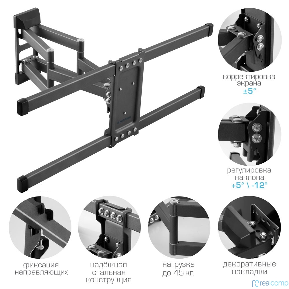 Kromax CORBEL-10 grey titan {32"-75"; Максимальная нагрузка: 45 кг; VESA: 200x200, 200х300, 200х400, 300х200, 300х300, 300х400, 400х200, 400х300, 400х400, 600х400 мм; Наклон: +5°-12°Поворот: ±90°}
