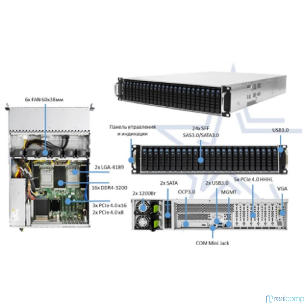 Сервер Звезда Иридиум ИР-224Х (2 х Intel Xeon Silver 4310 / 16 х 32GB DDR4 ECC Reg / 6 х 3840GB SAS SSD / 2 x 10GE SFP+ / 2 x 10GE SFP+ / Raid 0, 1, 5, 6, 10, 50, 60 4Gb 8i / 1 х RAID BBU / SUPSTD12)