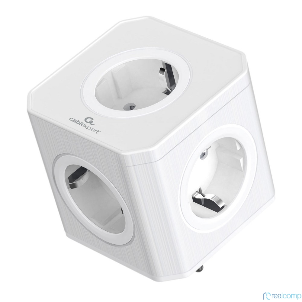 Cablexpert Тройник CUBE-5-16-W Tower (5р, 16А, заземл, ) белый, коробка {22566}