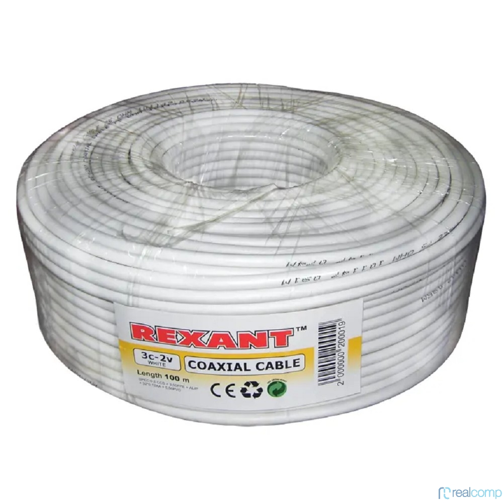 Rexant (01-2611) Кабель коаксиальный 3С-2V, 75Ом, CCS/Al/Al, 48%, 100м, INDOOR, белый