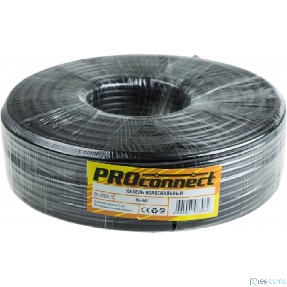 PROconnect (01-2205-1) Кабель коаксиальный RG-6U, 75Ом, CCS/Al/Al, 48%, 100м, OUTDOOR, черный