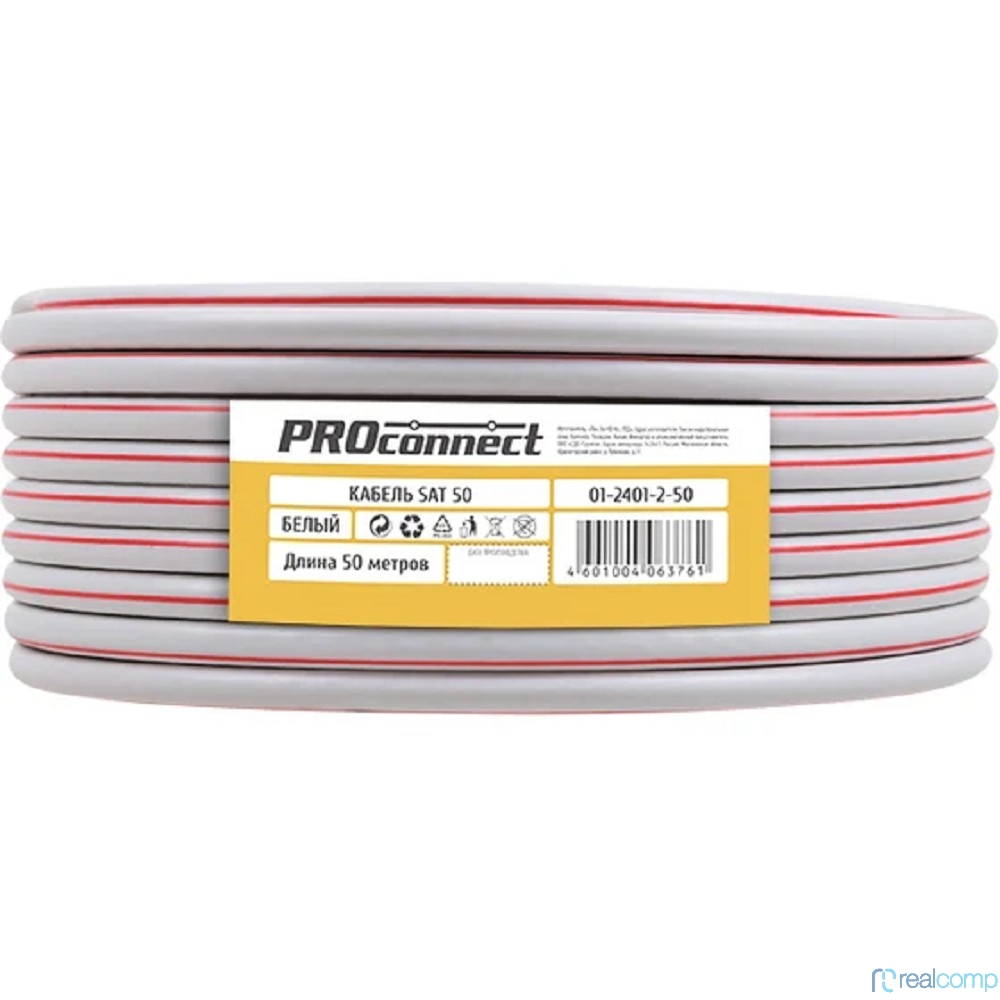 PROconnect (01-2401-2-50) Кабель коаксиальный SAT 50M, 75Ом, CCS/Al/Al, 75%, 50м, INDOOR, белый