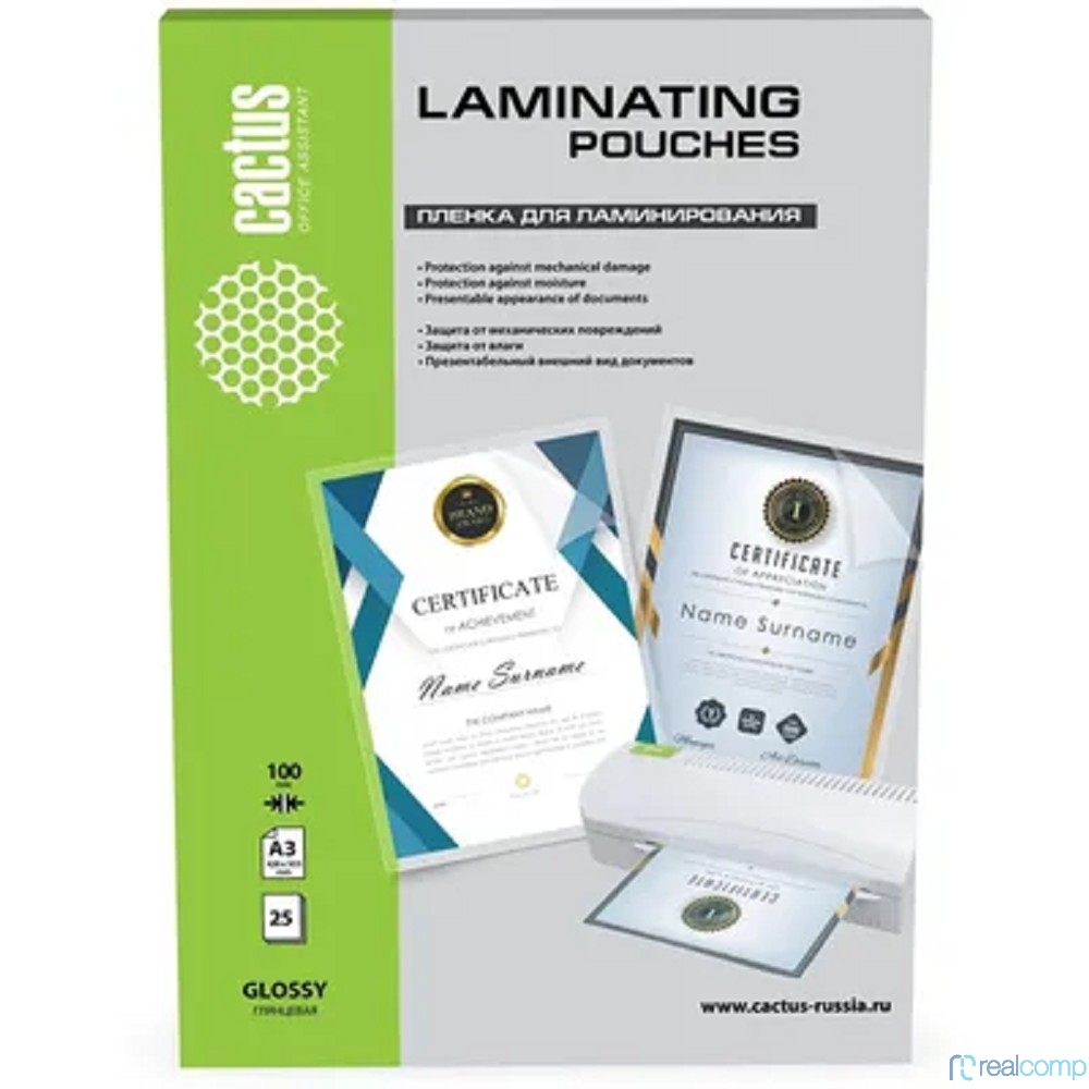 Пленка для ламинирования Cactus CS-LPGA310025, 100мкм, 426х303 мм, 25шт., глянцевая, A3