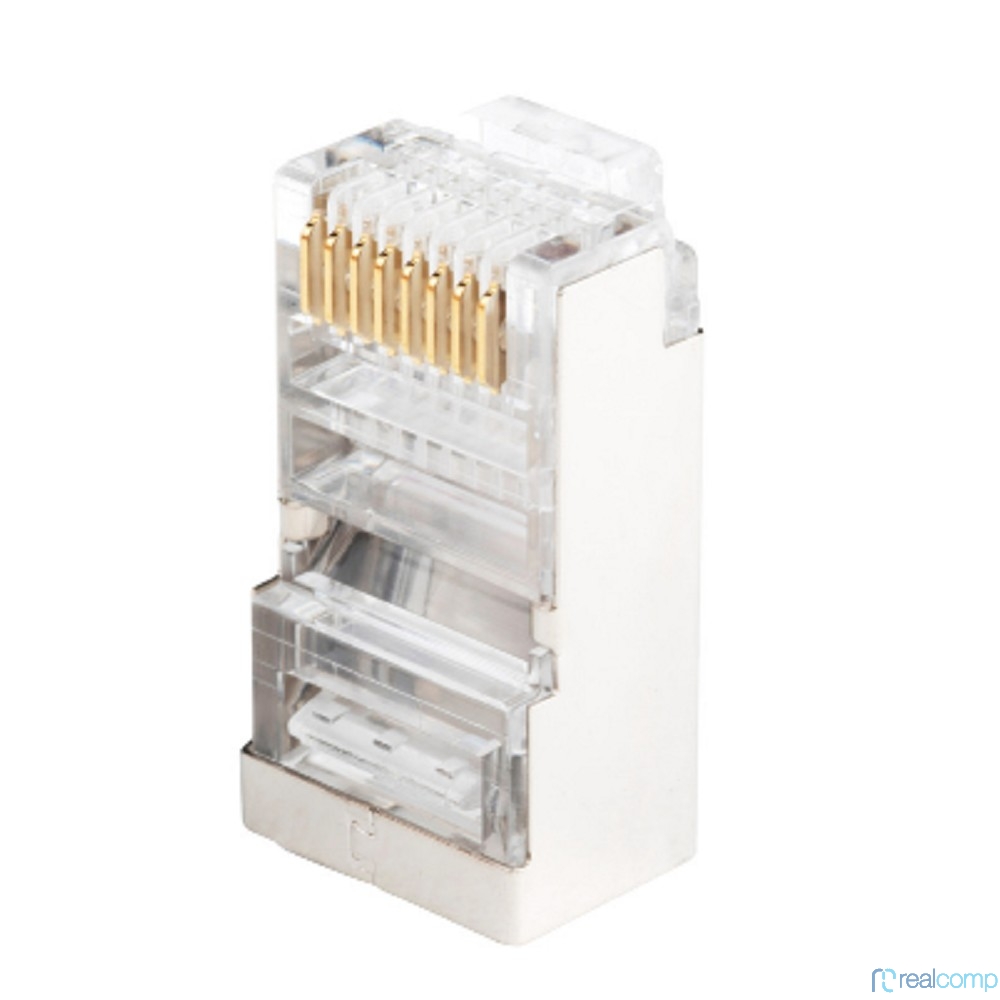 Hyperline PLUG-8P8C-U-C5-10 Разъем RJ-45(8P8C) под витую пару, категория 5e (50 µ"/ 50 микродюймов), экранированный, универсальный (для одножильного и многожильного кабеля) (10 шт)