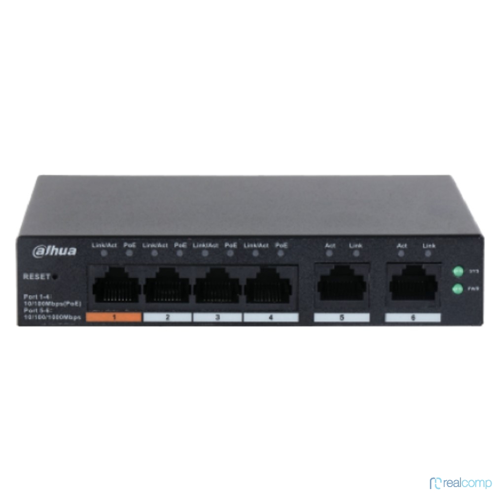 DAHUA DH-CS4006-4ET-60 4-портовый PoE коммутатор с функцией облачного управления, 4xRJ45 100Mb, 2xRJ45 100Mb uplink, суммарно 60Вт, коммутация 4.8 Гбит/с, MAC-таблица 8К