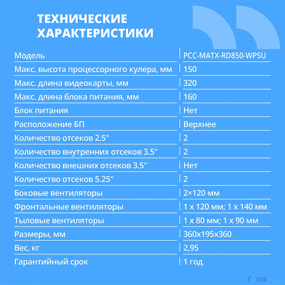 CBR Корпус mATX Minitower RD850, без БП, 1*USB 3.0, 2*USB 2.0, HD Audio+Mic, Black [PCC-MATX-RD850-WPSU]