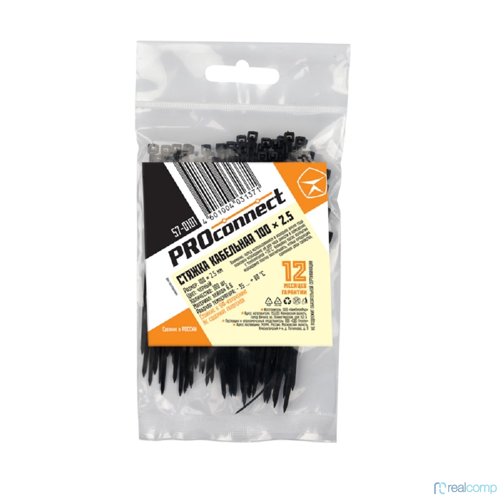 PROconnect (57-0101) Стяжка кабельная нейлоновая 100x2,5мм, черная (100 шт/уп)
