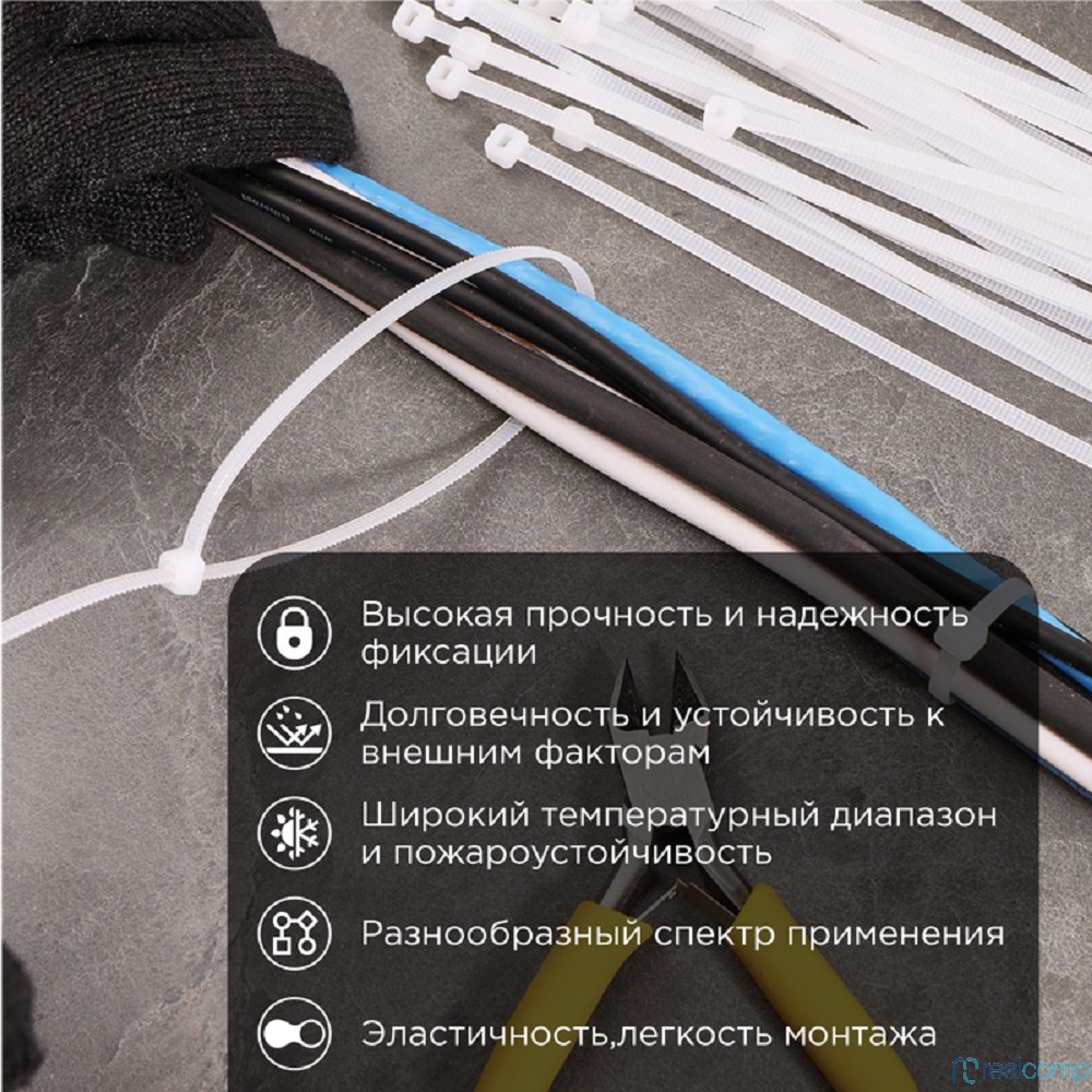 Rexant (67-0200) Стяжка нейлоновая Профессиональная 200x3,6мм, белая (100 шт/уп)