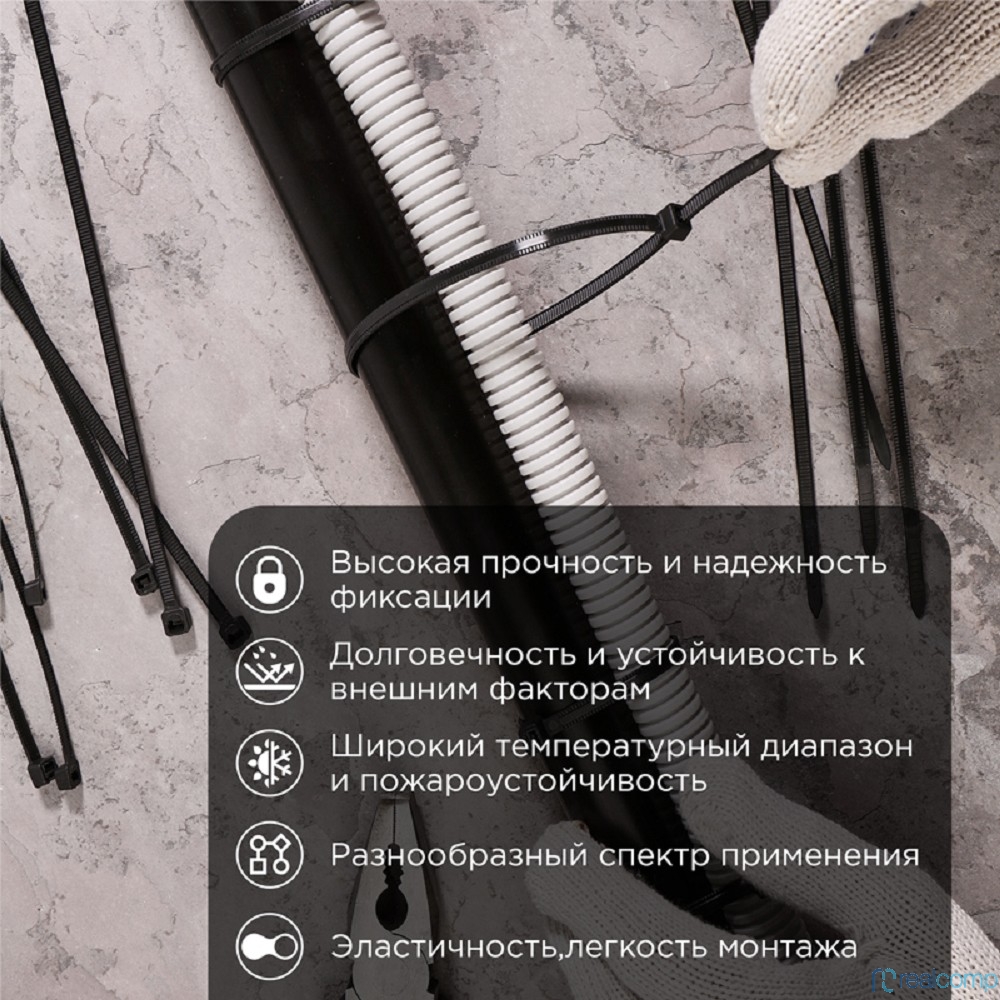Rexant (67-1302) Стяжка нейлоновая Профессиональная 300x4,8мм, черная (100 шт/уп)