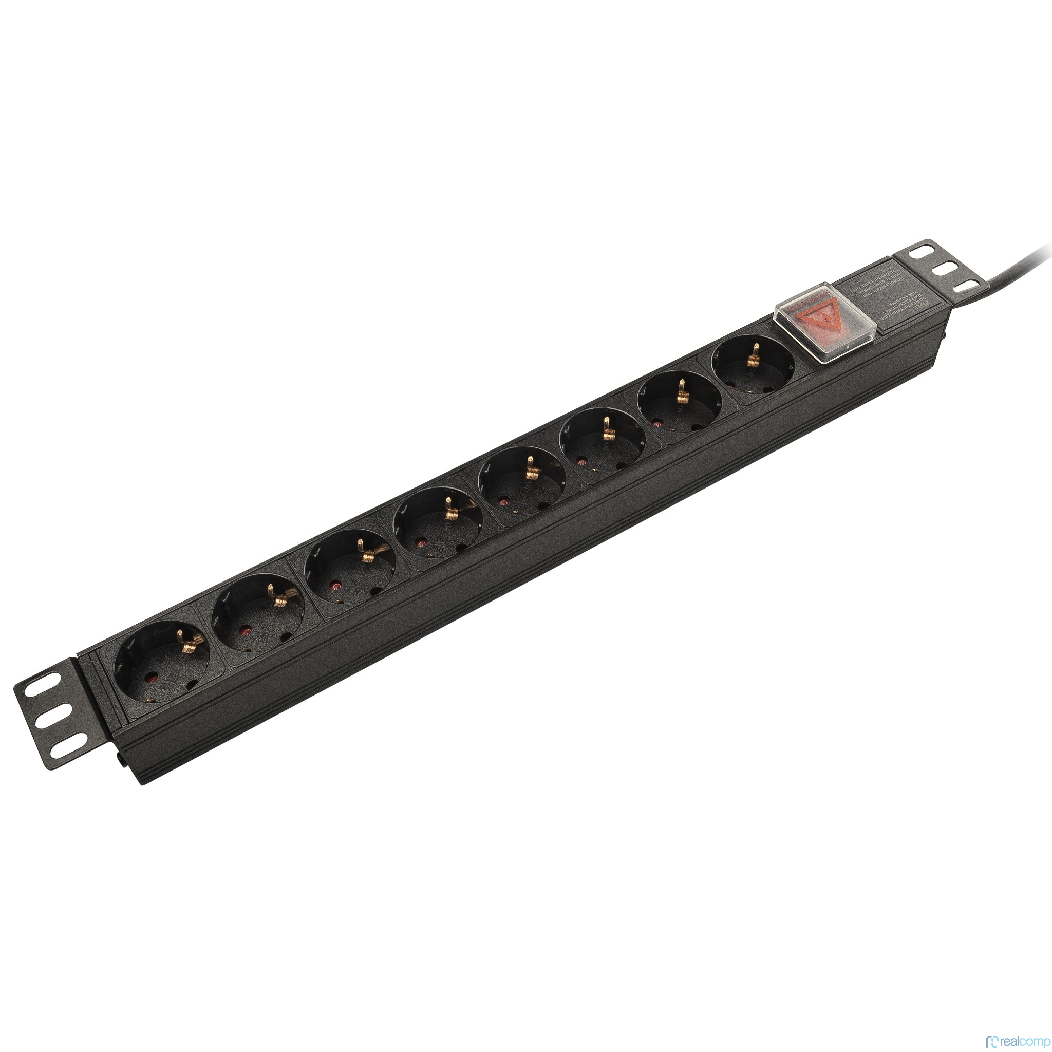 NEOMAX Блок евророзеток для 19"шкафов, горизонтальный, 8 розеток, 16 A, выключатель, шнур 2м, алюминиевый корпус [NM-PDU-G08]