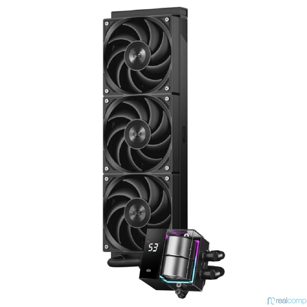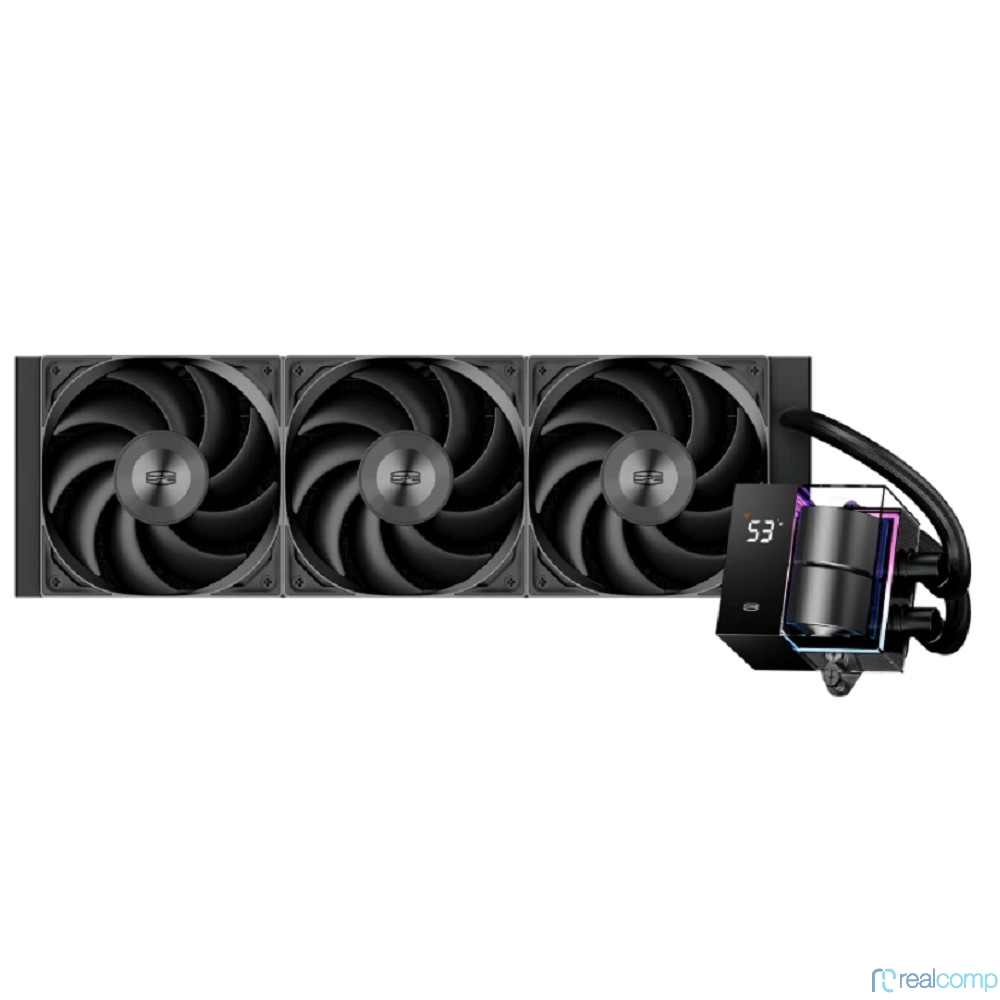 Система охлаждения/ PCCooler DS360 BK (310W, 360mm, LED temp., Black, ARGB Pump/ Fans: 3x120mm, 86.73CFM, 28dBA, 2200RPM/ Pump height 67mm, 28dBA, 3200RPM, Rad thickness 27mm/ S: 1851, 1700, 1200, 20X