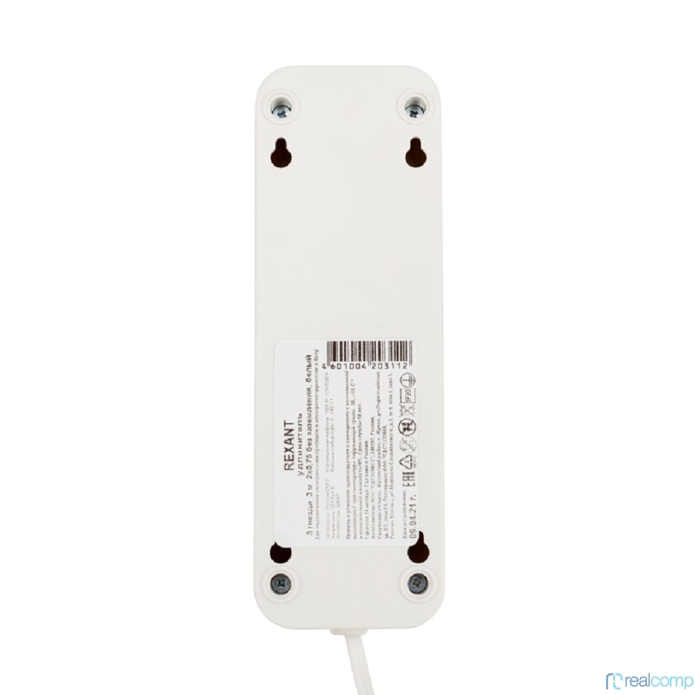 Rexant (11-8733) Удлинитель 3 гнезда, 3м, 2х0,75мм?, б/з, белый