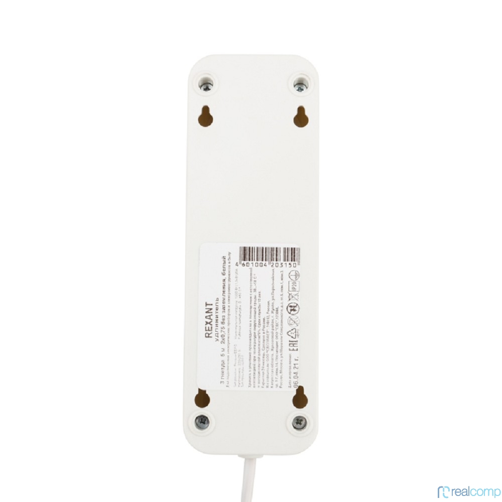 Rexant (11-8737) Удлинитель 3 гнезда, 5м, 2х0,75мм?, б/з, белый