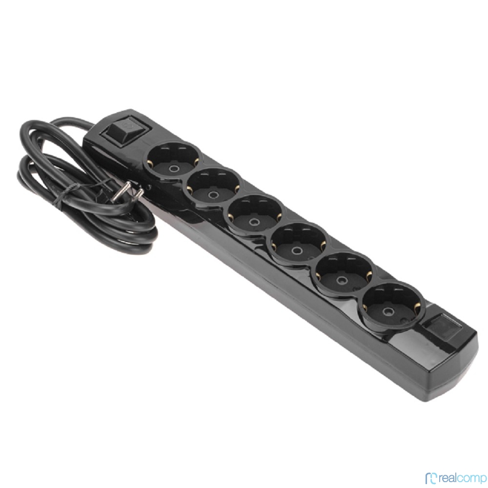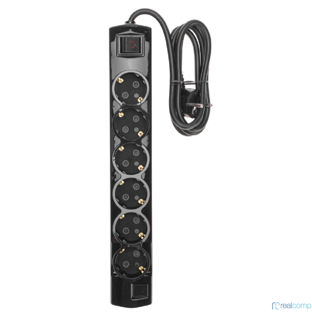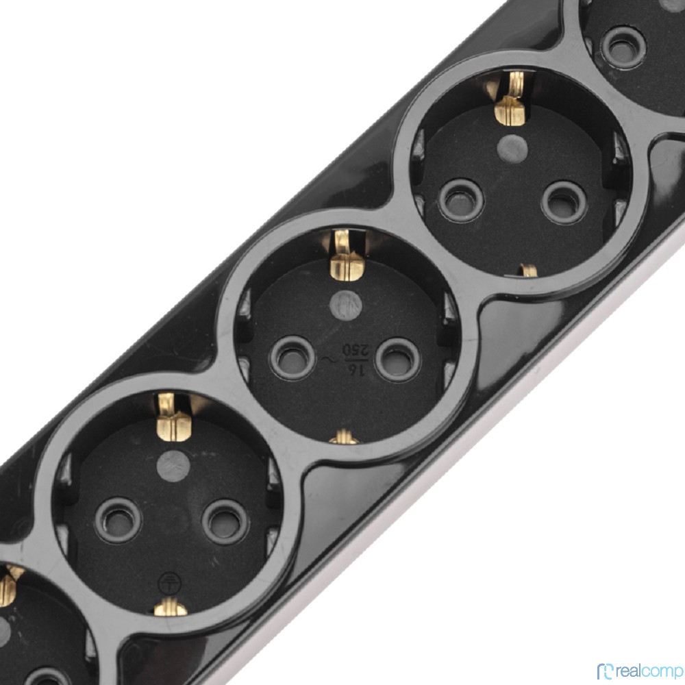 Rexant (13-4118) Удлинитель PREMIUM 6 гнезд, 1,5м, 3х1,5мм?, с/з, с выключателем, черный