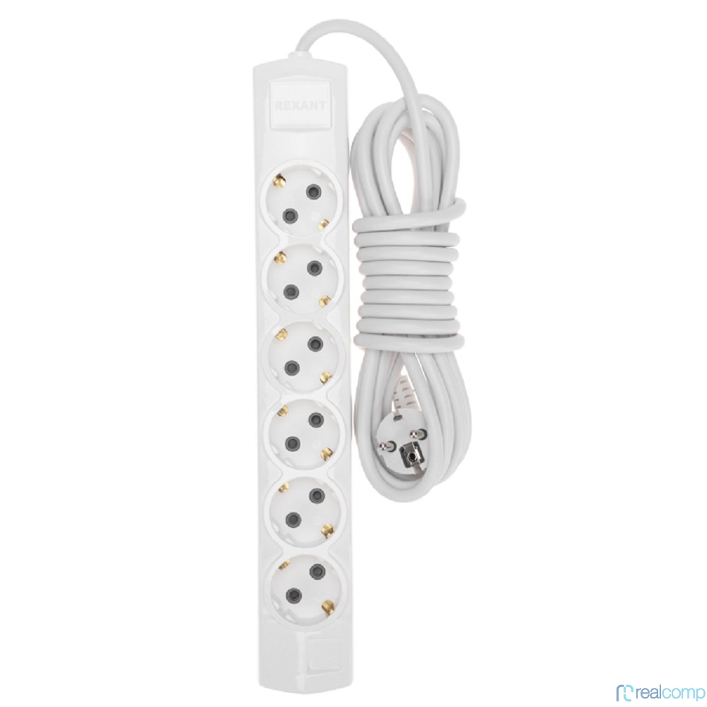 Rexant (13-4114) Удлинитель PREMIUM 6 гнезд, 5м, 3х1,5мм?, с/з, белый