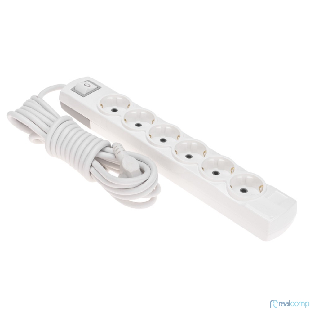 Rexant (13-4117) Удлинитель PREMIUM 6 гнезд, 5м, 3х1,5мм?, с/з, с выключателем, белый
