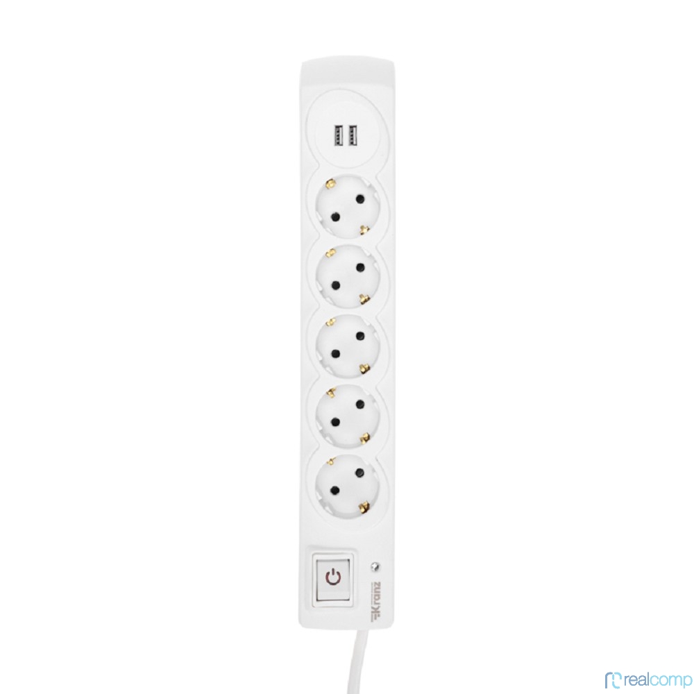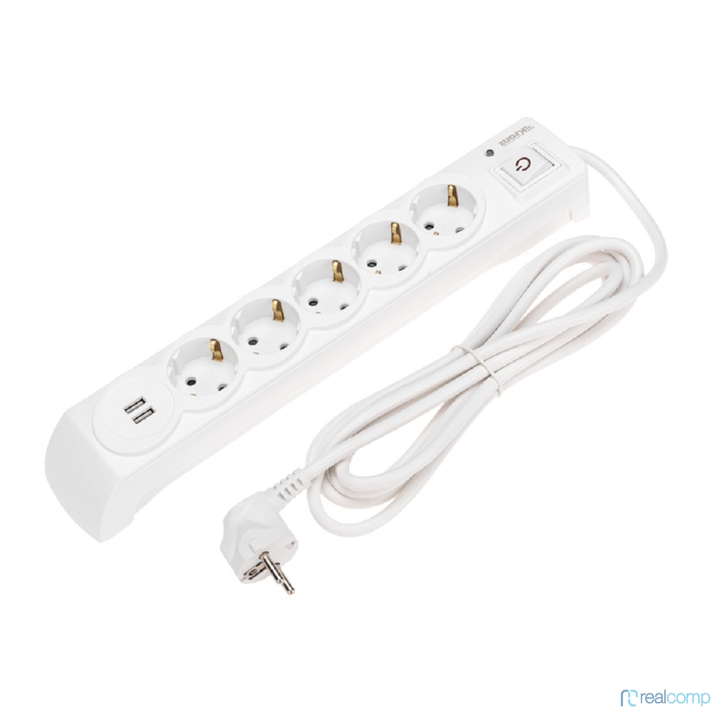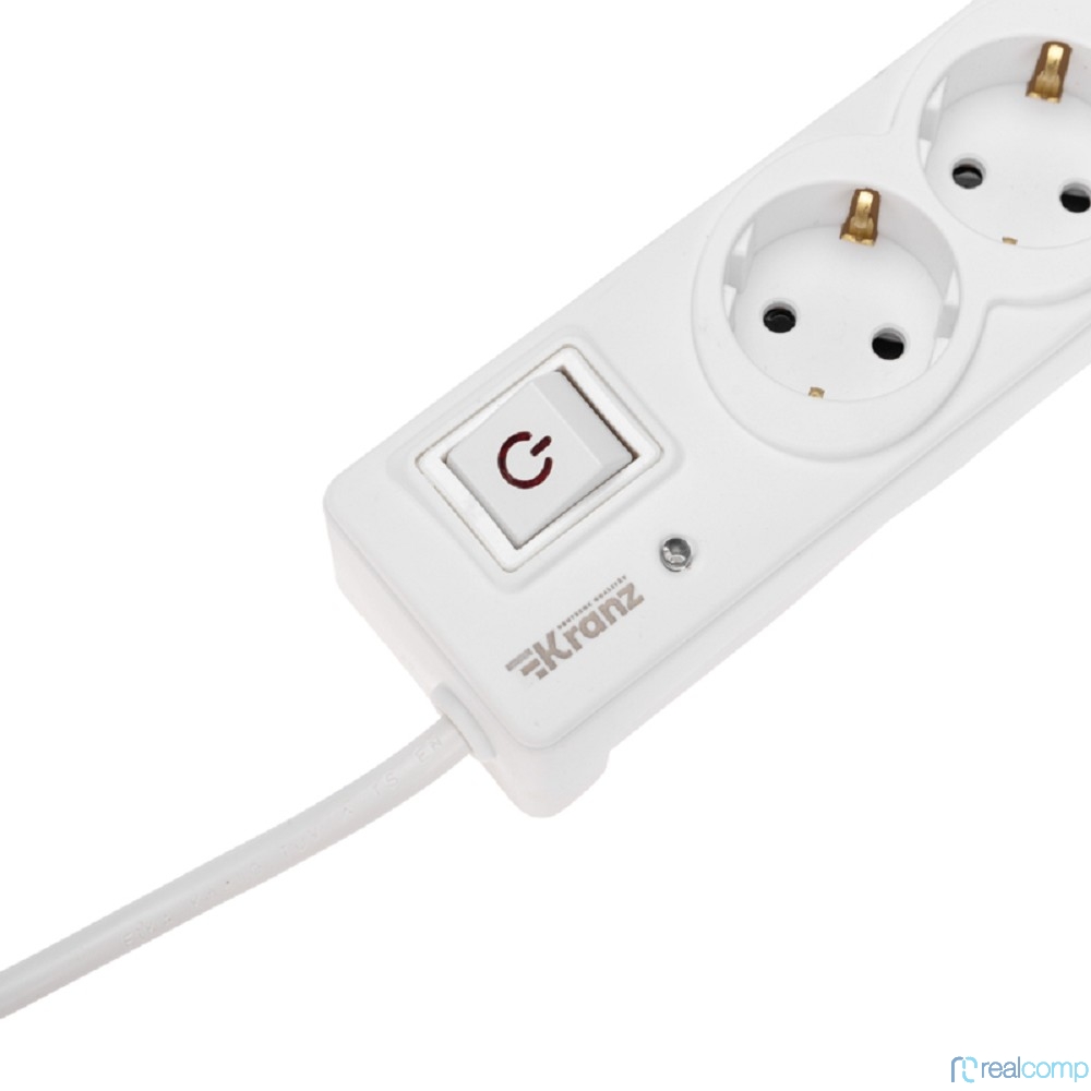 Kranz (13-4700) Фильтр сетевой 5 гнезд, 3м, 3х1,5мм?, с автовыкл, 2 USB, белый