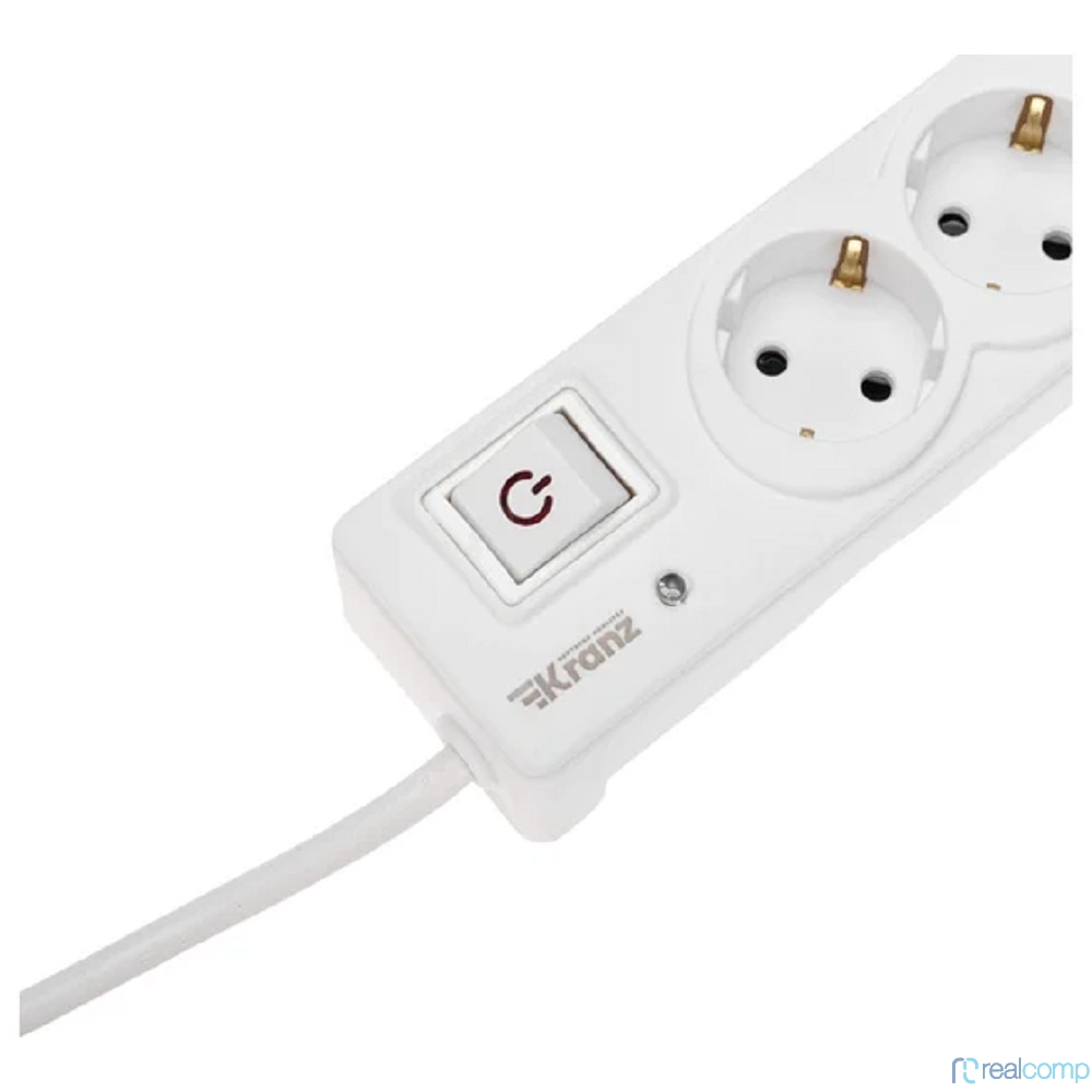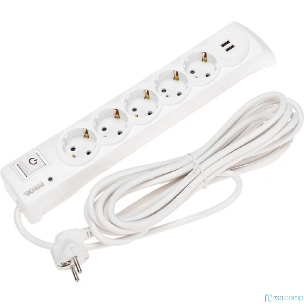 Kranz (13-4701) Фильтр сетевой 5 гнезд, 5м, 3х1,5мм?, с автовыкл, 2 USB, белый