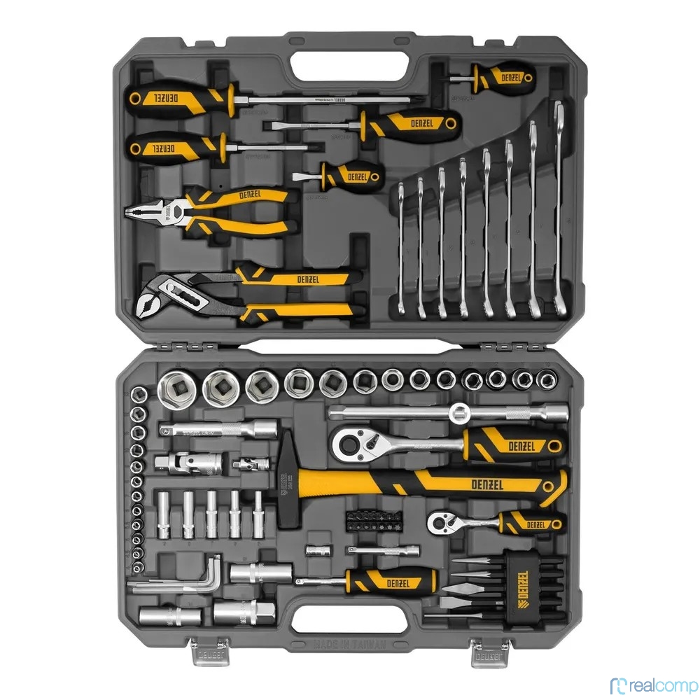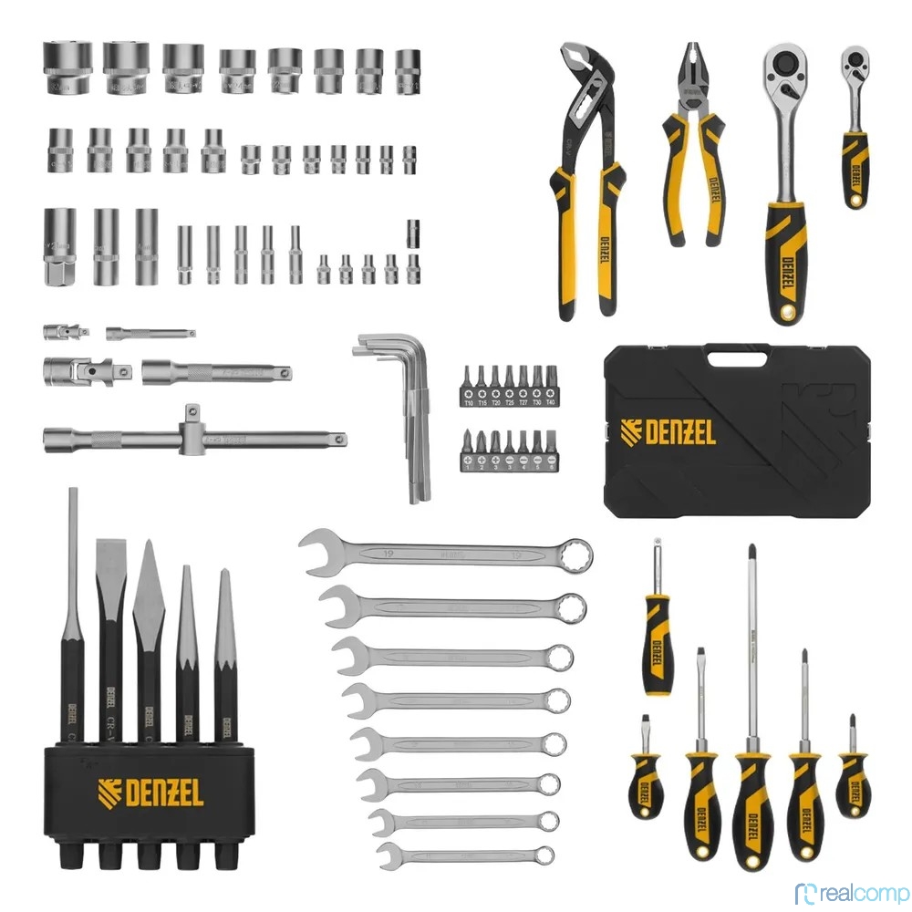 Набор инструментов, 1/2", 1/4", CrV, S2, пластиковый кейс, 84 предмета// Denzel [15802]