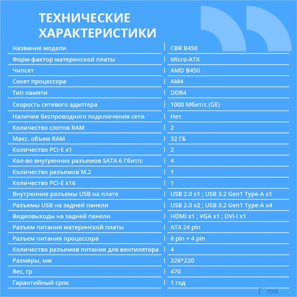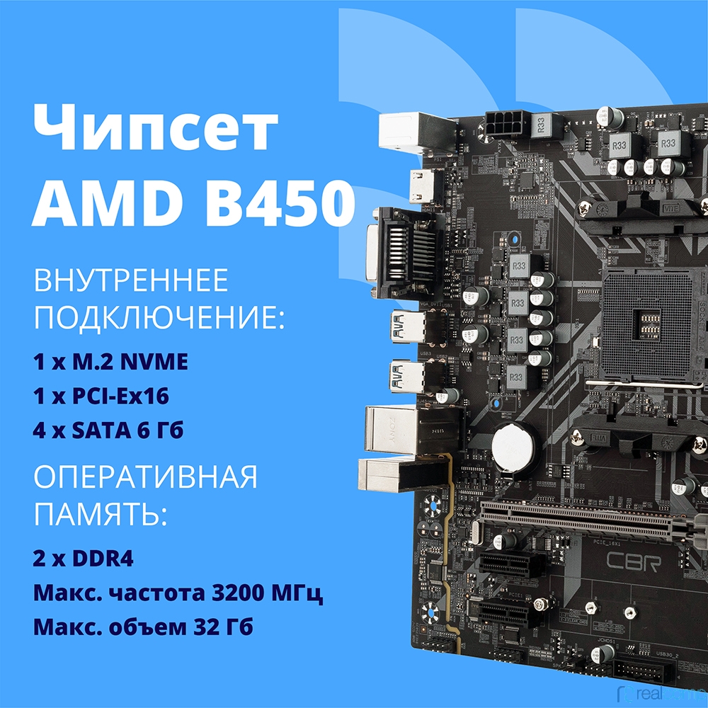 CBR B450 { Chipset B450, Socket AM4, 2*DDR4, mATX, VGA+HDMI, 1*PCIEx16,1*PCIEx1,1*M.2(NVME & SATA), 4*SATA3, 2*USB2.0 + 2*USB3.0, LAN 1Gb}