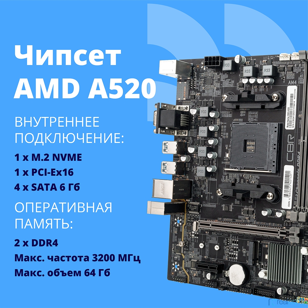 CBR A520 { Chipset A520, Socket AM4, 2*DDR4, mATX, VGA+HDMI, 1*PCIEx16,1*PCIEx1,1*M.2(NVME & SATA), 4*SATA3, 2*USB2.0 + 4*USB3.0, LAN 1Gb}