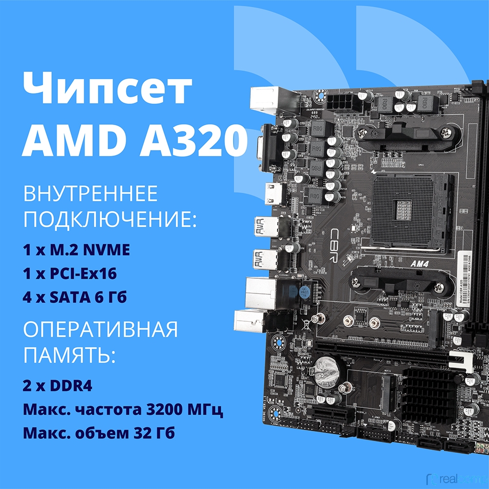 CBR A320 OEM { Chipset A320, Socket AM4, 2*DDR4, mATX, VGA+HDMI, 1*PCIEx16,1*PCIEx1, 1*M.2(NVME), 4*SATA3, 2*USB2.0 + 4*USB3.0, LAN 1Gb} OEM УПАКОВКА