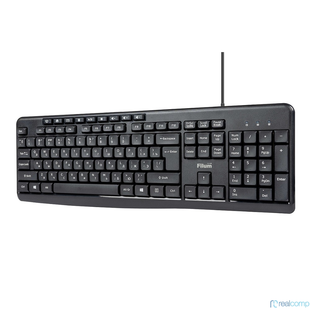 Клавиатура Filum FL-KB10-BK USB 113 кл., мембранная, черная, Windows XP/Vista/7/8/10, MacOS