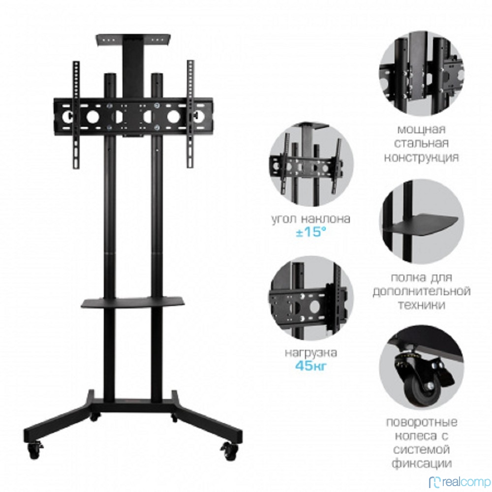 Arm media PT-STAND-9 black {LED/LCD телевизоров 32"-65", max 45 кг, наполная, высота 1630 мм, наклон ±15°, max VESA 600x400 мм}