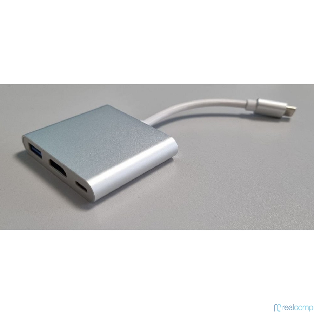 Bion Мульти переходник USB Type-C - HDMI/4K@30hz + USB-A (3.0) + USB Type-C (Power Delivery charging), 0.15 м [BXP-A-USBC-MULTI-5]