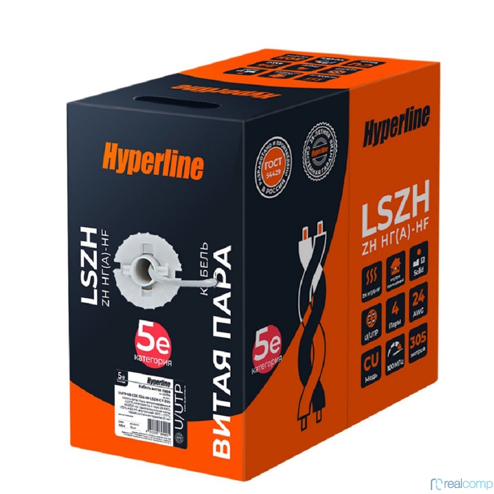 Кабель информационный Hyperline UUTP4R-C5E-S24-IN-LSZH-GY-305 кат.5E UTP 4 пары 24AWG LSZH внутренний 305м серый