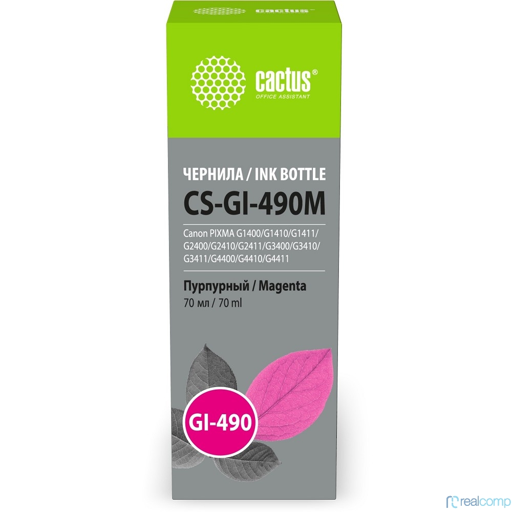 Чернила Cactus CS-GI-490M пурпурный 70мл для Canon PIXMA G1400/G1410/G1411/G2400/G2410/G2411/G3400/G3410/G3411/G4400/G4410/G4411