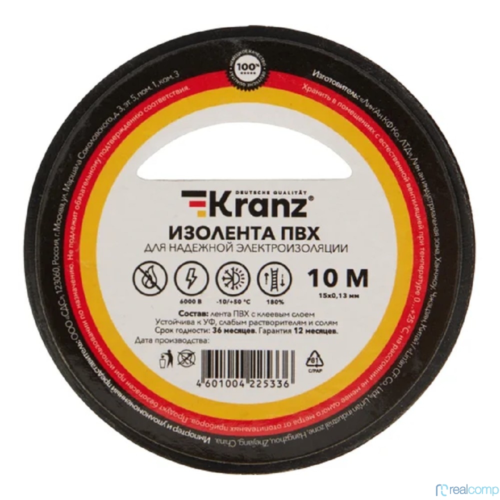 Изолента ПВХ 0,13х15мм, 10м, черная KRANZ