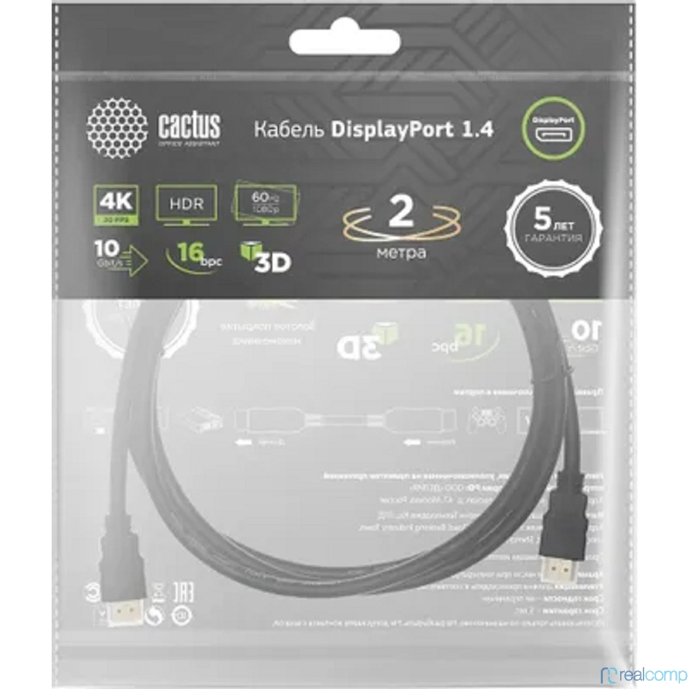 Кабель аудио-видео Cactus CS-DP-DP-1.4-2 DisplayPort (m)/DisplayPort (m) 2м. позолоч.конт. черный