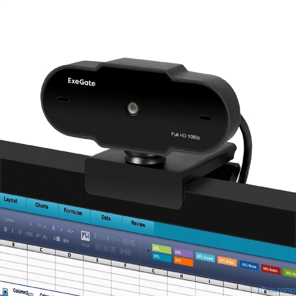 ExeGate GoldenEye C300 Full HD (матрица 1/4" 2 Мп, 1920х1080, 1080P, USB, фиксированный фокус, микрофон с шумоподавлением, универсальное крепление, кабель 1,2 м, Windows® 7/8/10/11, Mac OS 10.6 и выше