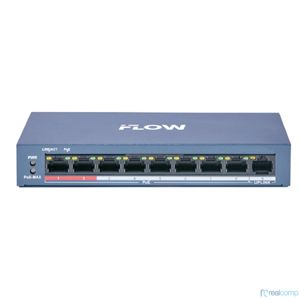 iFLOW F-SW-EU209POE-V/L L2, неуправляемый, 8 портов, 1 uplink порт 10/100M RJ45, 802.3af/at, бюджет PoE 60 Вт, поддержка режима передачи до 300м,10Мб/с, CAT6; защита от перенапряжения 6 кВ