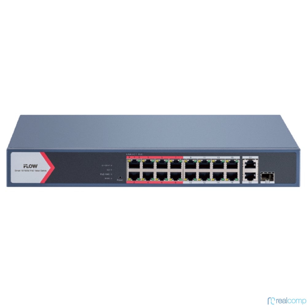 iFLOW F-SW-EM418POE-VM/L L2, Смарт-управляемый, 16 портов, 1 uplink порт 1000М RJ45, 1 гигабитный комбо-порт, 802.3af/at, бюджет питания PoE 130 Вт, поддержка режима передачи до 300м,10Мб/с, CAT6