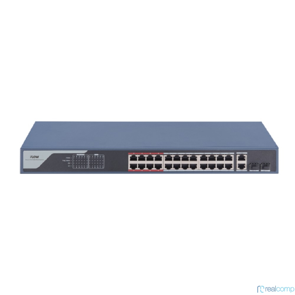 iFLOW F-SW-EM426POE-VM L2, Смарт-управляемый, 24 порта, 2 гигабитных комбо-порта, 802.3af/at, бюджет мощности PoE 370 Вт, поддержка режима передачи до 300м,10Мб/с, CAT6
