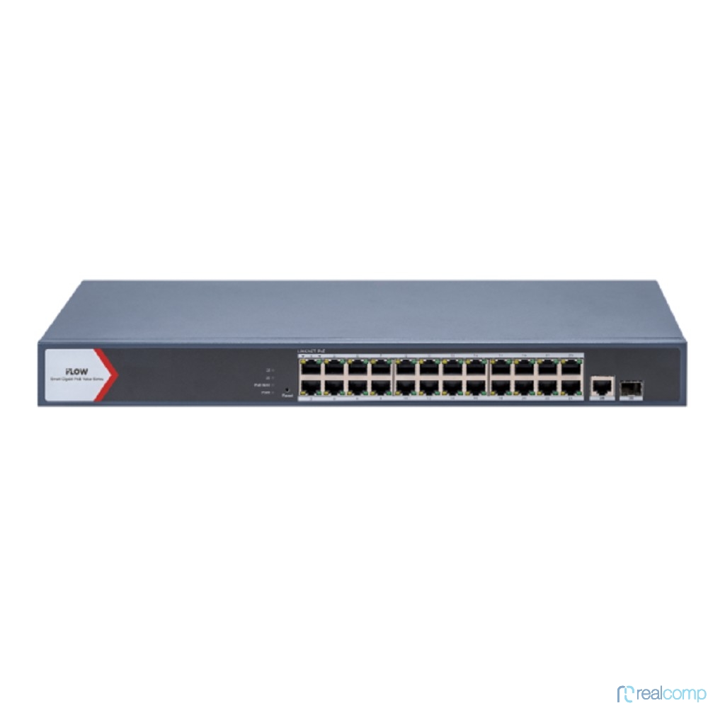 iFLOW F-SW-EM626POE-VM/L L2, Смарт-управляемый, 24 гигабитных портов RJ45 PoE, 1 uplink порт 1000М RJ45 1 гигабитный порт SFP, 802.3af/at, бюджет PoE 230 Вт, поддержка режима передачи до 300м,10Мб/с,