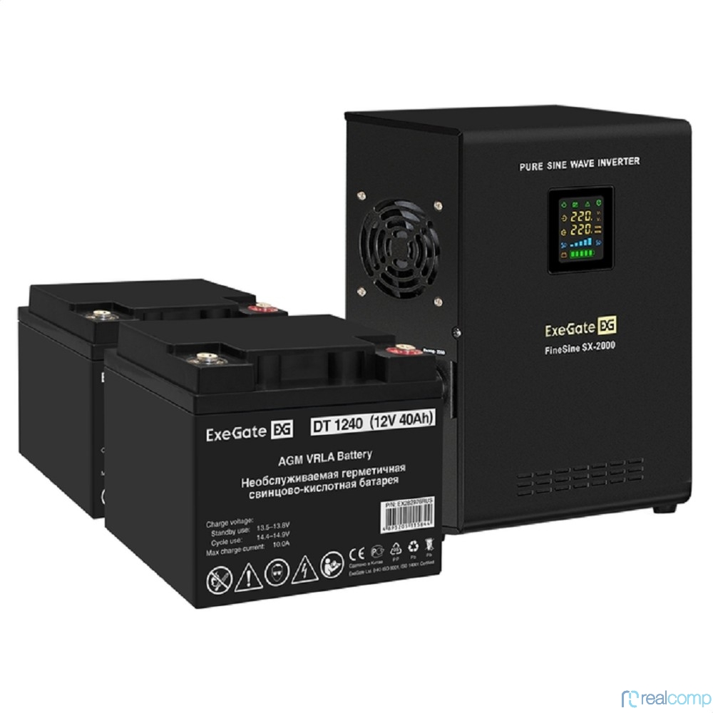 Exegate EX296589RUS Комплект ИБП EX296001RUS + батарея 40Ач EX282976RUS 2шт (инвертор, синус, для котла, настенный) FineSine SX-2000.LCD.AVR.2SH <2000VA/1400W, чистая синусоида, цветной LCD-дисплей, A