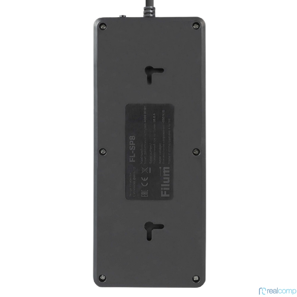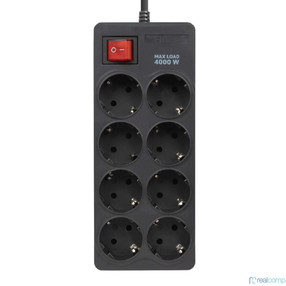 Filum Сетевой фильтр FL-SP8-1.8M-16, 4000 Вт., 8 розеток, шнур 1.8 м., черный {00-01095525}