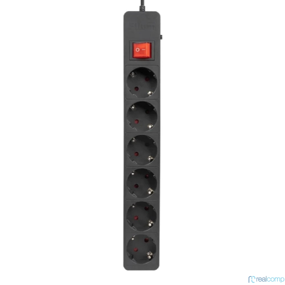 Filum Сетевой фильтр FL-SP6-5.0M-16, 4000 Вт., 6 розеток, защитные шторки, шнур 5.0 м., черный {00-01099766}