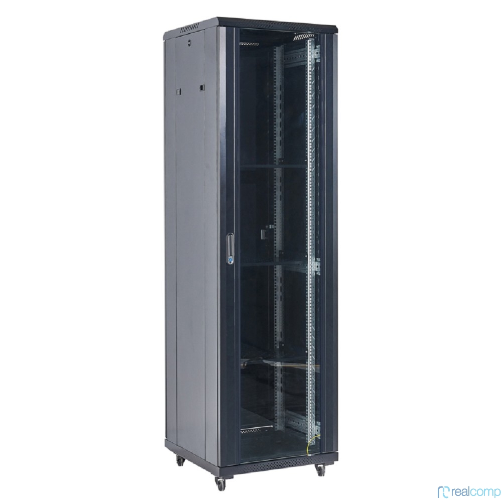 Rexant (04-1866-212) Напольный шкаф 19" 18U 600х600х987 (ШхГхВ), дверь стекло, металлическая задняя дверь, боковые съемные стенки, RAL 9005