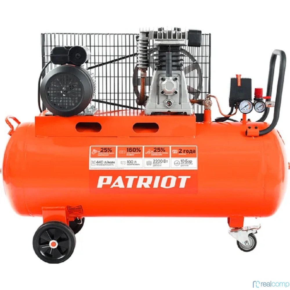 PATRIOT Expert Компрессор поршневой ременной [525301965] { PTR 100-440I, 440 л/мин, 10 бар, 2200 Вт, 100 л, быстросъемный 1/4" + "елочка" }