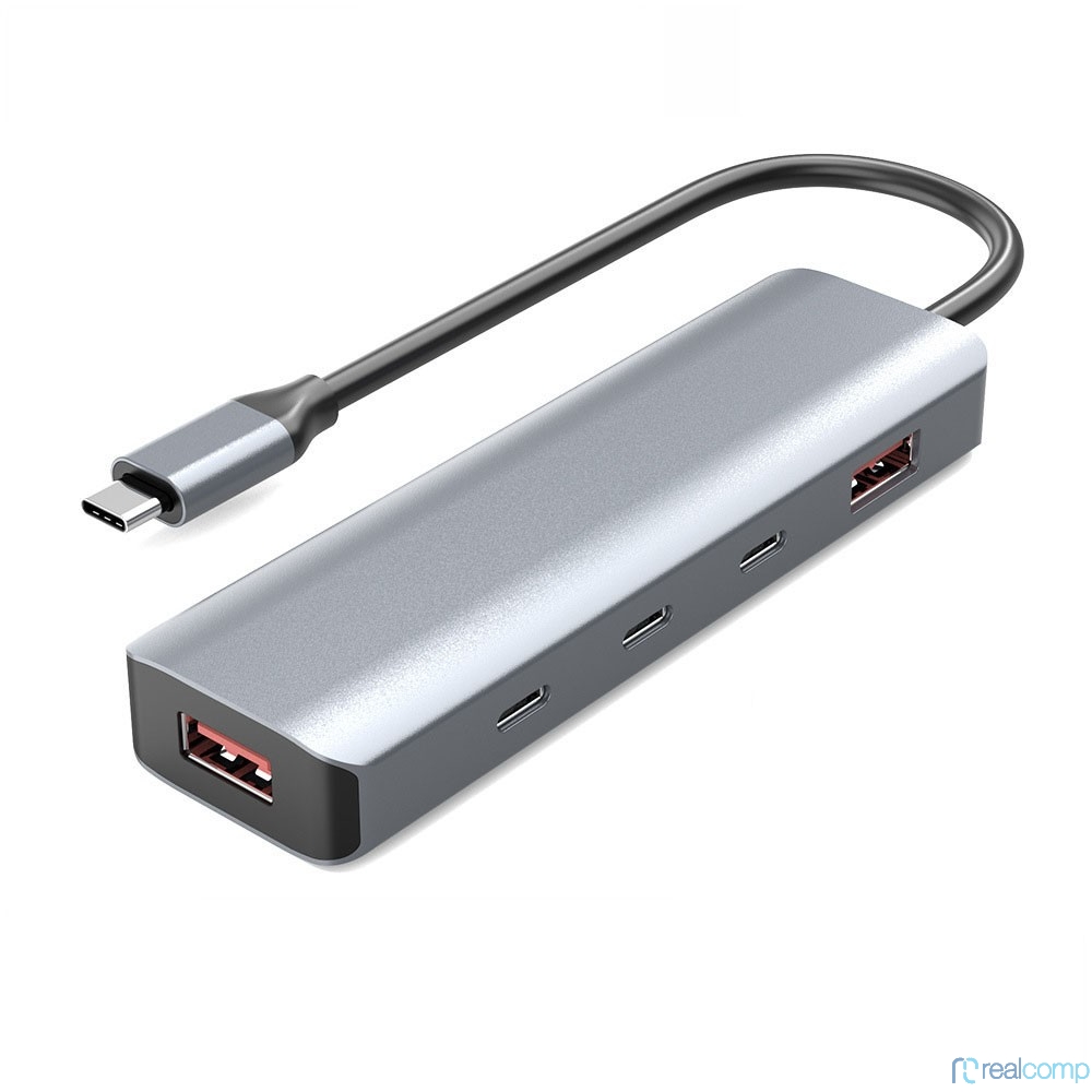 ORIENT CU-1041C, Type-C разветвитель USB 3.2 Gen2 (10 Гбит/c), порты: 2xUSB-A + 2xUSB-C, порт USB-C для доп.питания 5В, кабель USB Type-C, алюминиевый корпус, серебристый (33314)