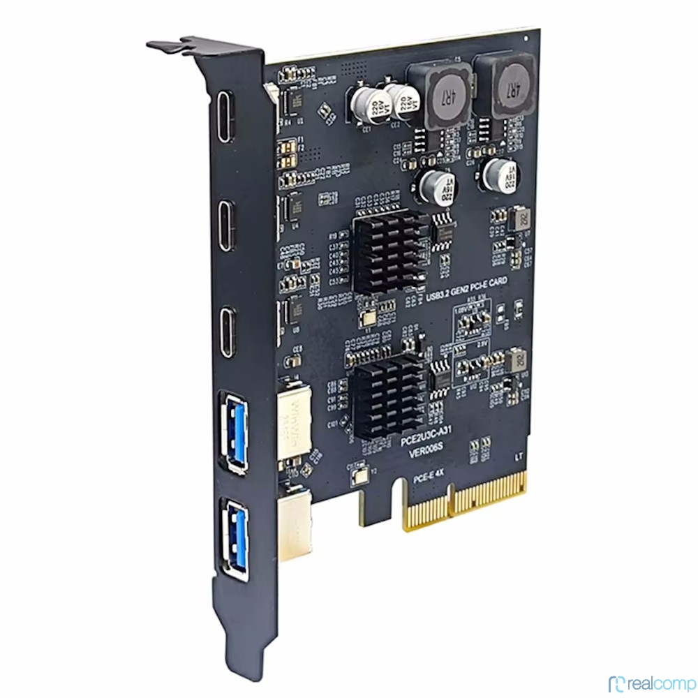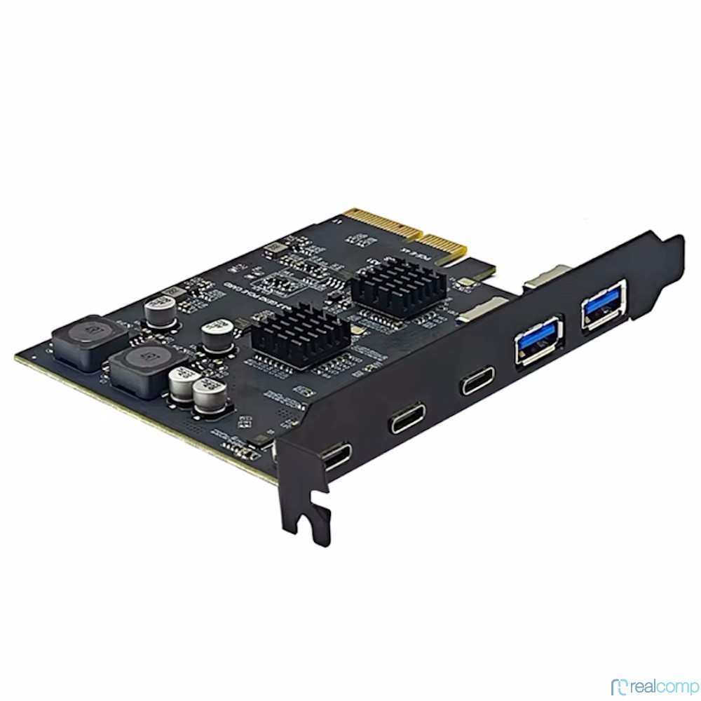 ORIENT AM-U3142PE-2A3C, Контроллер PCI-Ex4 v3.0, USB 3.2 Gen2, скорость до 10 Гбит/с, 5-port ext (2xType-A + 3xType-C), ASM3142+VL822 chipset, (33332)